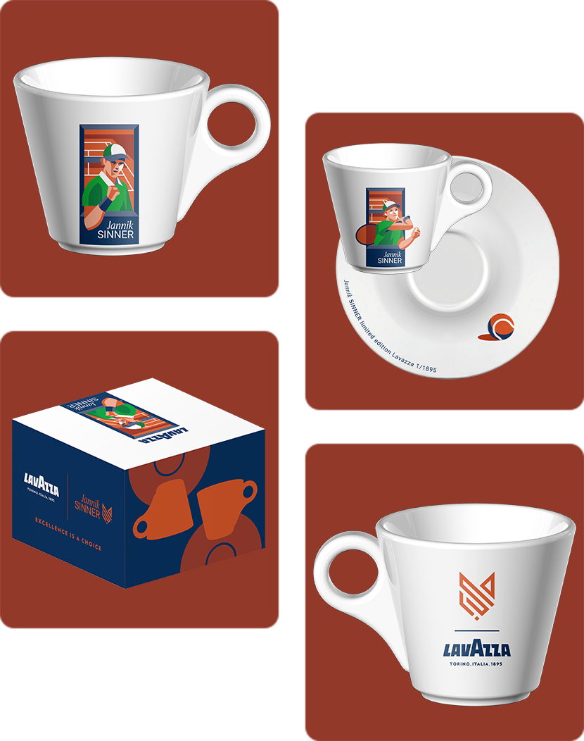 An exclusive espresso set, crafted in just 1895 pieces – a tribute to Lavazza’s foundation year. Includes two espresso cup and saucers, featuring a special clay-court background. Each set is uniquely numbered, from 1 to 1895, making every piece truly exclusive.